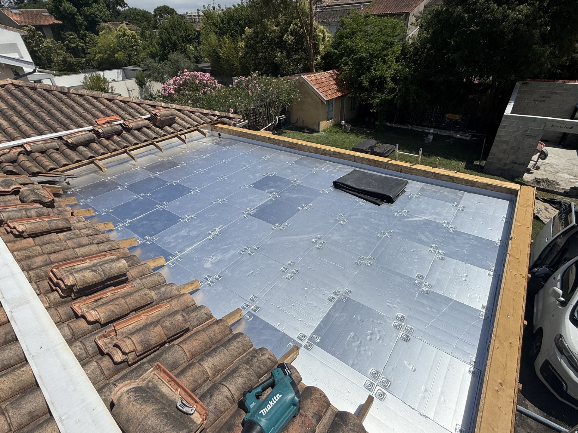 Pour améliorer les performances thermiques de votre toiture, nous proposons une isolation par soufflage, en rouleaux ou par plaques isolantes en extérieur.